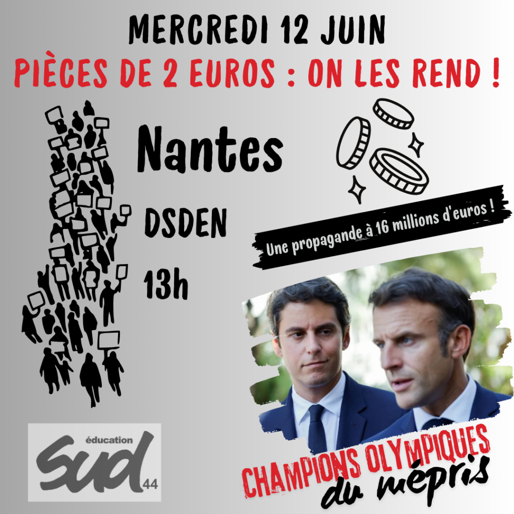Toujours plus haut, toujours plus loin, toujours plus fort dans l'ineptie et l'irrespect des élèves et des personnels ! Ils détruisent méticuleusement l'école et organisent de gigantesques opérations de communication à 16 millions d'euros, en distribuant des pièces de deux euros.